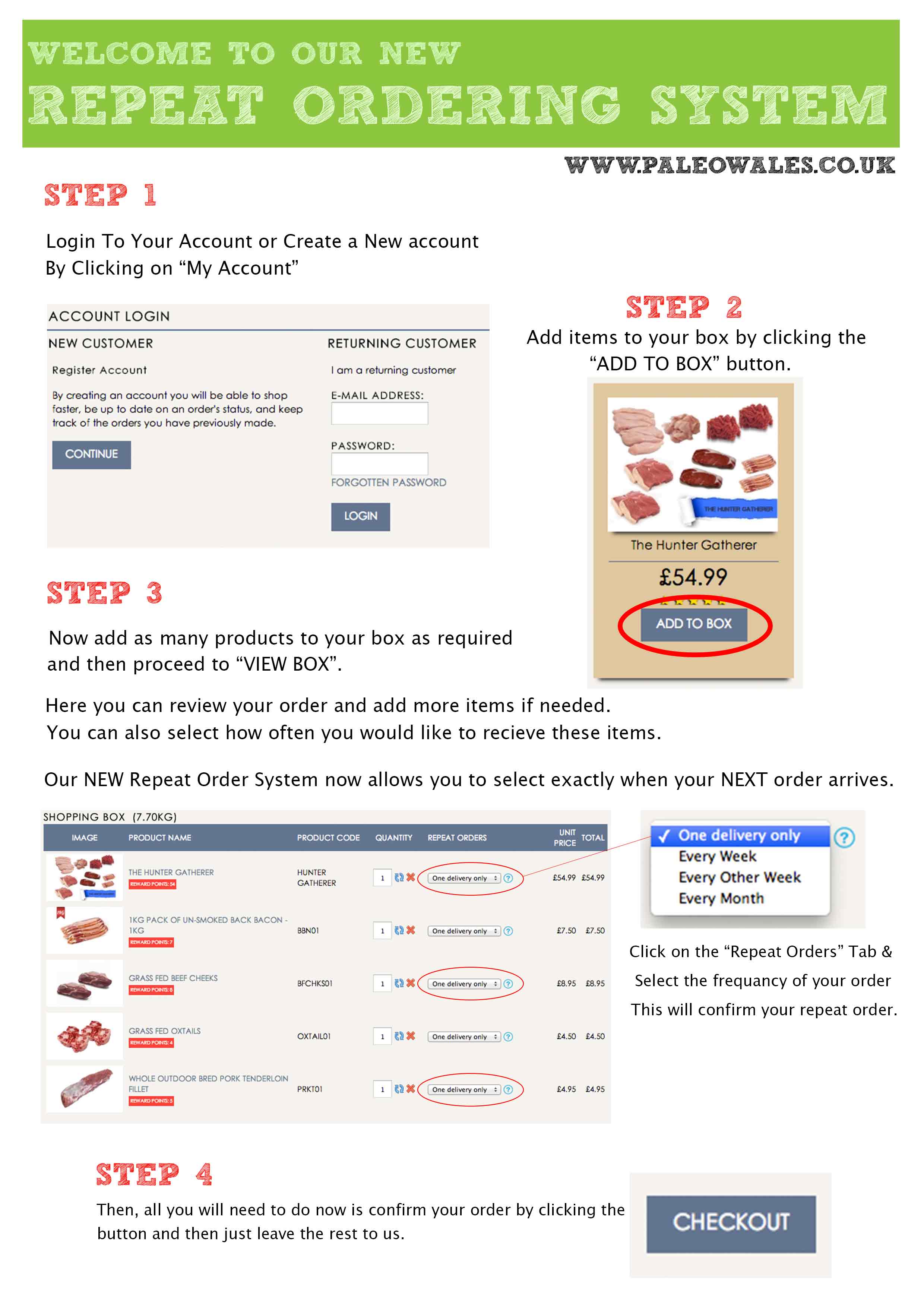 For those reasons we have now created our Repeat Order System that allows you to select how often you want each product delivered to your home or place of work.